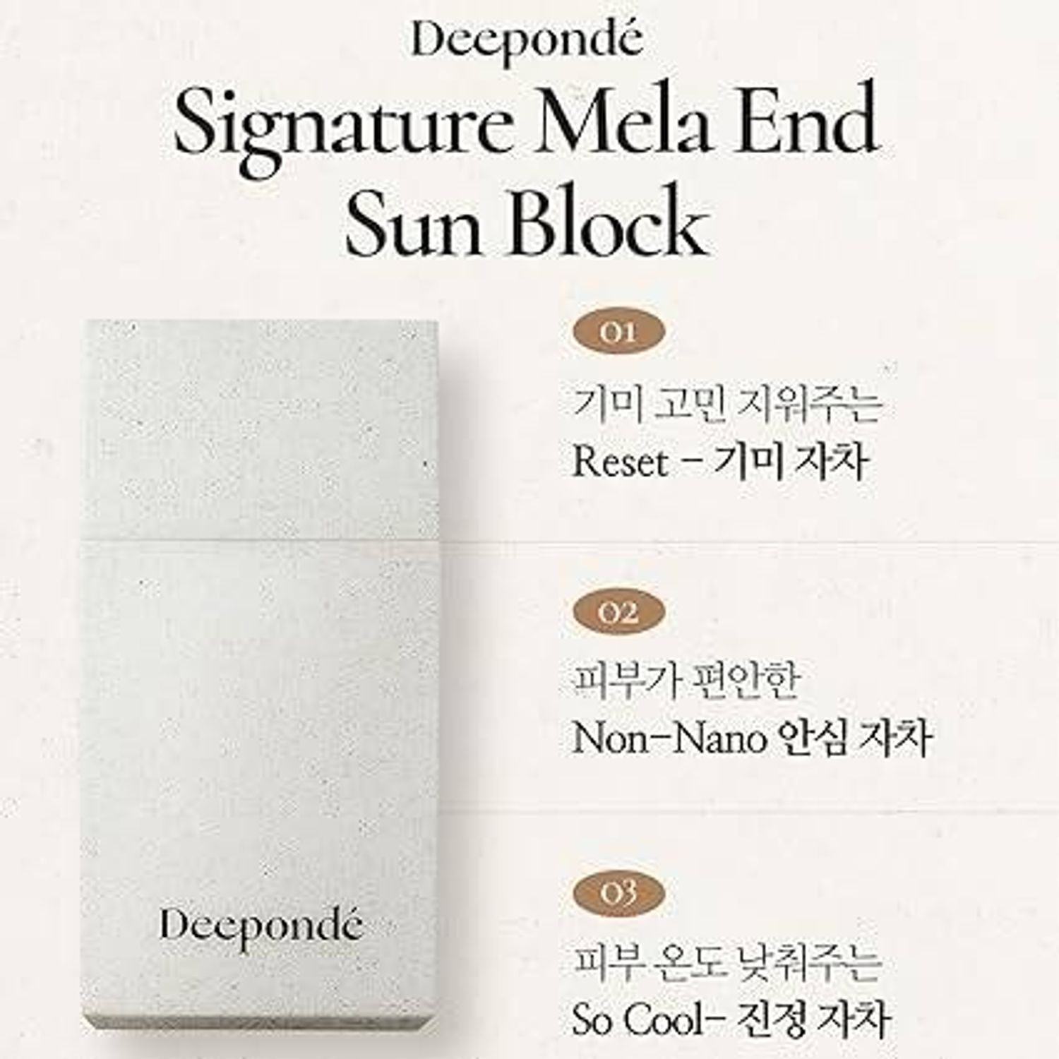 Deeponde’ брэнд нь хүний арьсны гүн дэх гоо сайхныг сэргээх зорилготой бөгөөд, дорнын гоо сайхны уламжлалд тулгуурласан орчин үеийн стандартыг нэвтрүүлж буй 100% веган орц найрлагатай брэнд юм.Deeponde’ брэндийн SPF 50+ | PA++++ нарны UV туяанаас арьсыг эрчимтэй хамгаалах үйлчилгээтэй Sun Block.